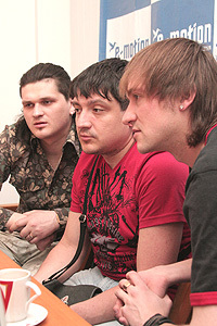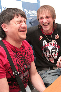 Ребята, а как Вам кажется то, что Вы считаете смешным - многие считают смешным тоже или лишь небольшая часть аудитории? Я, например, (считаю себя человеком с нормальным чувством юмора бывшего КВНщика) очень радуюсь 95-кварталу, но Вас, извините, не могу воспринимать, т.к. считаю, извините "плоскарями", наряду с "Аншлагом" или "Кривым зеркалом". Прокомментируйте пожалуйста Ваш личный взгляд на Ваши шутки. Не видите ли проблем с авторством? (Пожалуйста, не воспринимайте мой вопрос как цель обидеть Вас лично, как актеров. С этим у Вас - отлично!).