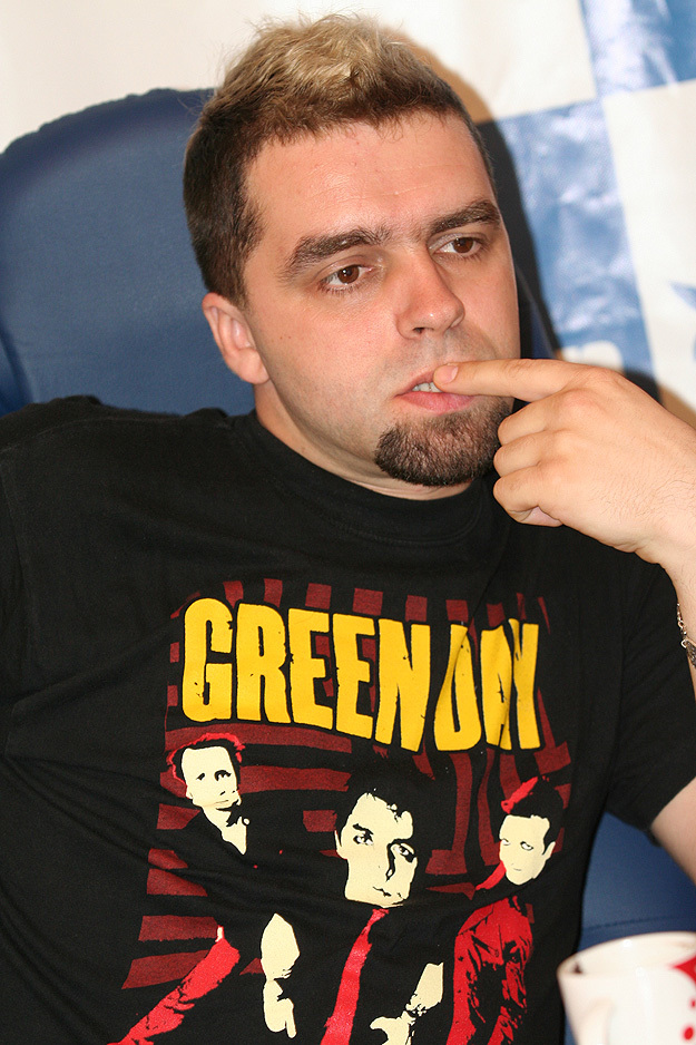 1. В обычном режиме, когда нет переездов в другие города, просыпаюсь в 12 часов дня, ложусь в 5 утра. 2. Репетируем в Хмельницком, там находится наша шикарная репетиционная база, на которую мы не любим никого приглашать, но все-таки люди приходят, мы не можем отказать, хотя, репетиции как таковой уже и нет. Мы не любим, когда к нам приходят гости, предпочитаем показывать уже готовые песни на концертах. 3. Лично я отдыхаю в первой половине августа, это неизменно Семииз, Кацевели, последние 5 лет. 4. Страшно люблю читать, в последнее время увлекся публицистикой начала 20 века. В основном история Украины и России.